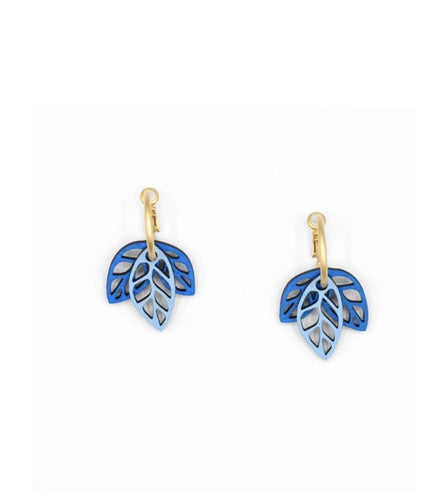 Blue Rustling Leaves Hoop Earrings