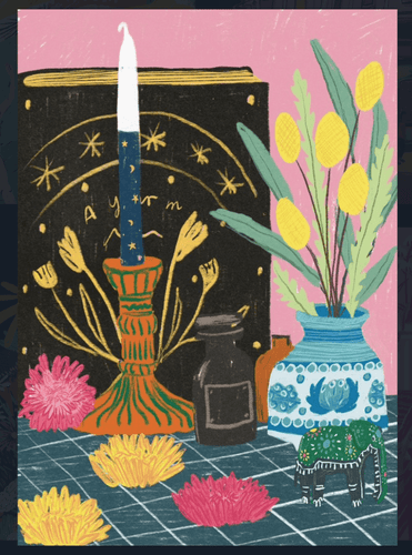 Teapot and Tulip Risograph Print- A3